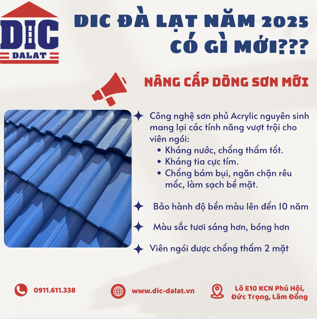 Ngói màu DIC ĐÀ LẠT sử dụng công nghệ sơn mới