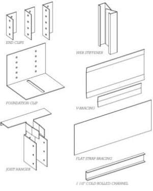 Các phần tử khung thép nhẹ được sản xuất, dựa trên tiêu chuẩn A1003 của ASTM, từ tấm thép kết cấu tạo thành hình dạng C hoặc Z hoặc S mạnh có khả năng hỗ trợ tải nặng. Thép đo được gọi là thép hình lạnh, xuất phát từ quá trình các thành viên thép được hình thành.